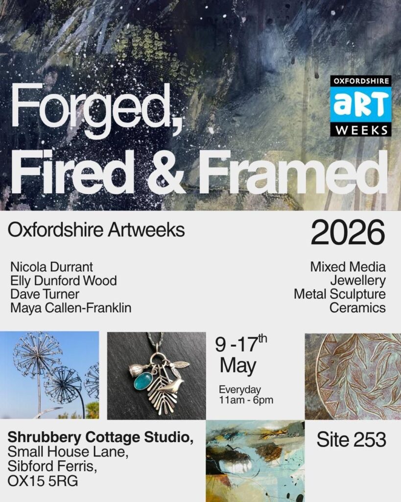 Come and visit a beautiful eco studio located in a pretty, village garden which houses a jeweller, potter, a mixed media artist and a blacksmith who forges metal garden sculptures. Here you will see a huge variety of professionally made items covering all price points. This venue is part of the NGS (National Garden Scheme) so definitely worth coming to see.
